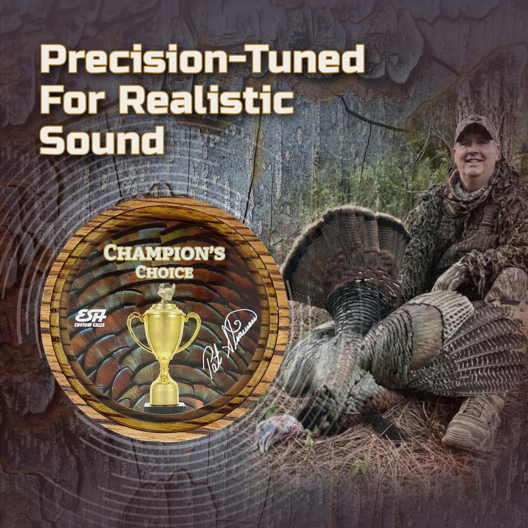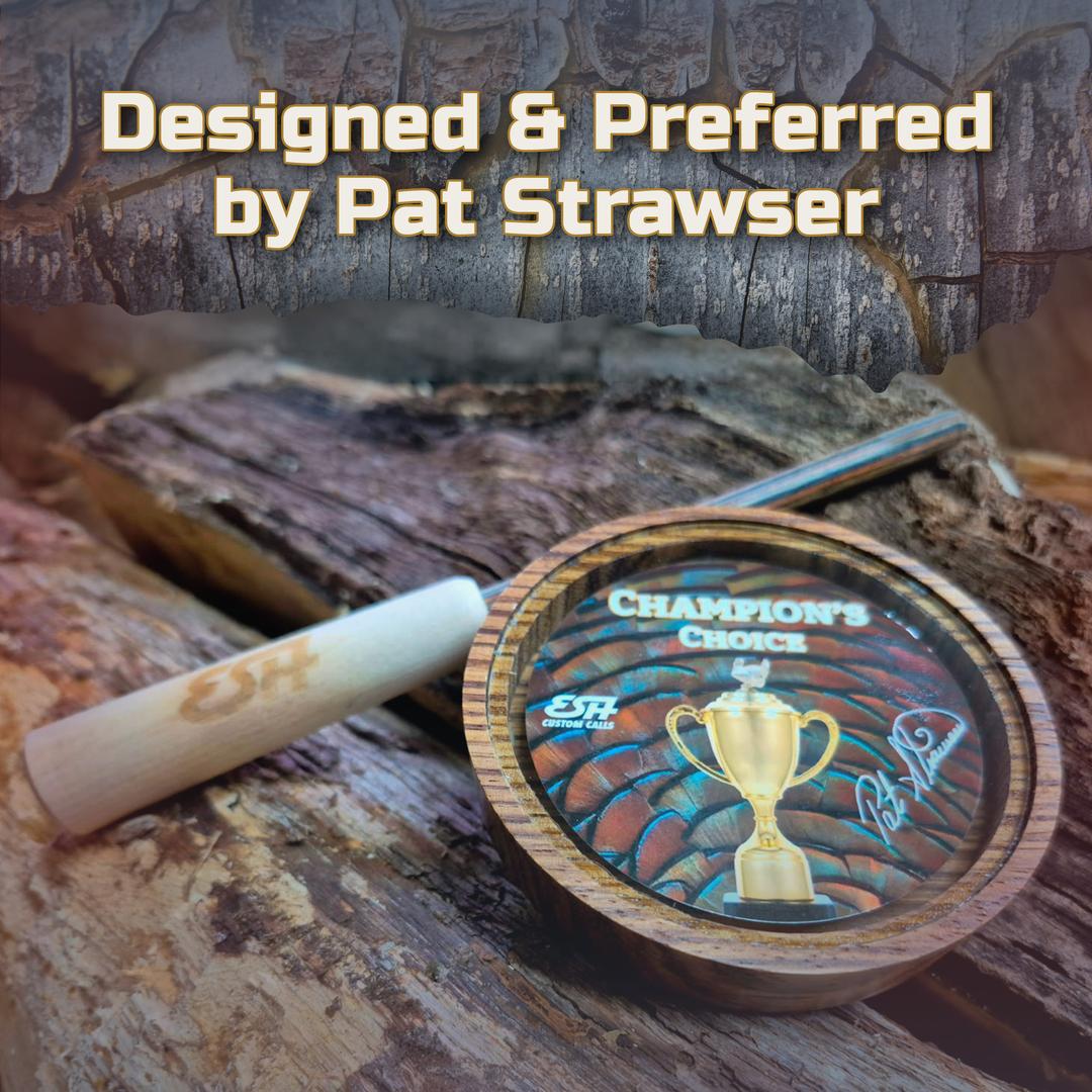 Pat Strawser, a Grand National Calling Champion, NWTF Hall Of Famer, and a turkey hunter for over 40 years designed this signature call, “Champion's Choice”.