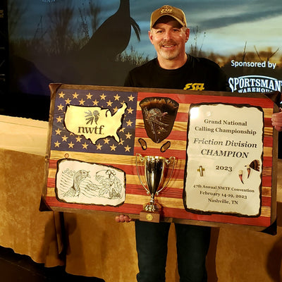 By the mid-1980s, Strawser was heavily involved in turkey calling competitions in the friction call division, entering contests across Pennsylvania and beyond. Over the years, he has earned multiple state and national titles, including New Jersey State Champion, Pennsylvania State Champion, three-time Masters Invitational Champion, and two-time U.S. Open Champion. He has also advanced to the National Wild Turkey Federation (NWTF) Grand Nationals Friction Division 12-man finals 13 times and winning that prestigious championship title three times in 2014, 2016, and 2017. Pat has numerous Championship Runner-Up and Top 5 finishes as well.